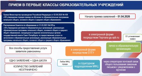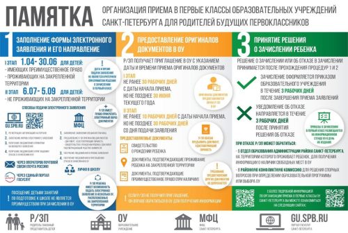 Информация на сайте Комитета по образованию Санкт-Петербурга https://k-obr.spb.ru/napravleniya-deyatelnosti/priem-v-1-klass/
