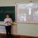 Ребята посмотрели короткий фильм о детях военного времени; узнали о крупных сражениях и их героях; о генерале И.В.Хазове, который освобождал г. Пушкин и г. Павловск от фашистских захватчиков. Дима Василица и Ярослав Рябуха подготовили сообщения о своих героях прапрадедах. А также ребята прочитали стихи известных поэтов о войне.